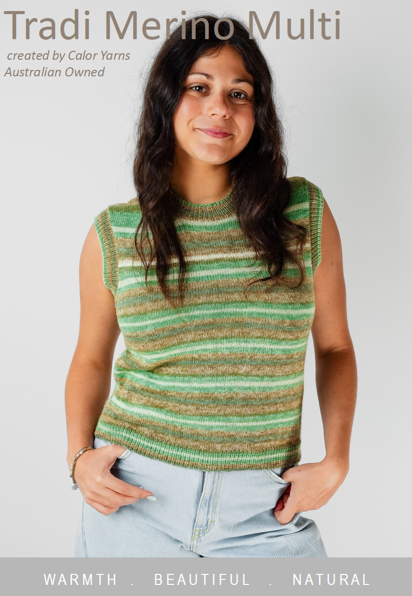 Forest Vest pattern shown in Tradi Merino Multi Forest Walk (82) colour. [Easy Knitting]